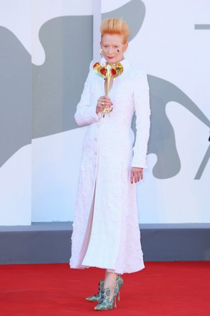 Тильда Суинтон в ChanelК сентябрю, когда маски стали привычным дополнением повседневной жизни, Тильда Суинтон на Венецианском кинофестивале выбрала собственный неожиданный акцент, покрыв лицо маской, сделанной вручную исландским художником Джеймсом Мерри. Это изделие стало еще более эффектным благодаря яркому тандему с блестящим белоым платьем Chanel из кутюрной коллекции весна-лето 2020.