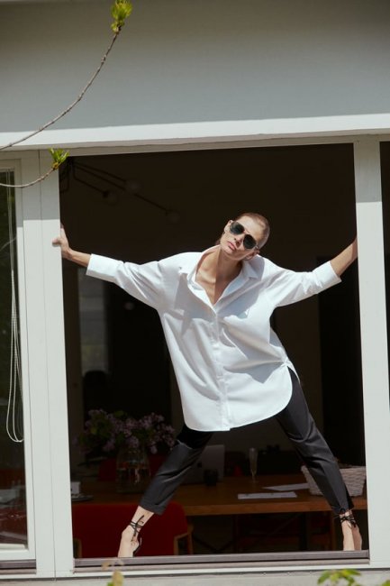 Если каждый look – это способ рассказать свою историю, то комплект с широкими брюками и базовой рубашкой повествует о поисках свободы и истинного предназначения. Для создания такого эффекта используйте традиционную цветовую связку из черных и белых элементов. Слишком формально? Не стоит недооценивать силу деталей — возьмите жесткую сумку с графическим принтом и актуальные серьги.