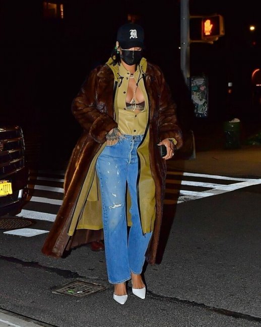 Даже после известия о том, что Рианна и A$AP Rocky провели вместе рождественские праздники на родине певицы в Барбадосе, пара все равно скрывает свой роман. Так, на днях Рири и Раким встретились за ужином в итальянском ресторане Emilio’s Ballato в Нью-Йорке, где шеф-поваром является парень Кэти Холмс, Эмилио Витоло-младший. Папарацци не удалось заснять пару вместе, однако в кадр попал новый образ Рианны. Певица надела синие потертые джинсы, белые туфли-слингбэки Attico, бейсболку R13, кожаную рубашку цвета хаки и соответствующую удлиненную модель с перфорацией из коллекции Bottega Veneta Resort 2021.