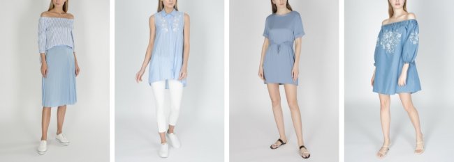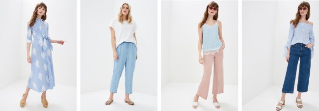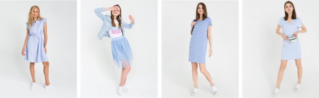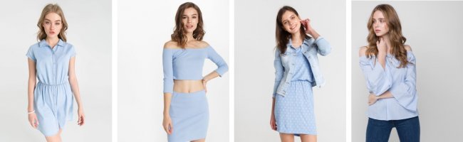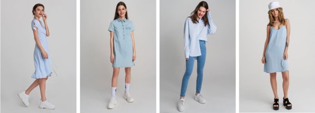 Но при этом на неделях моды в начале 2019 года многие стритстайлеры транслировали именно этот тренд, одеваясь в голубые плащи и обматываясь шарфами небесных оттенков. А сегодня этот цвет буквально захватил ритейл: нет, пожалуй, такого бутика, в котором не появилось бы нежных голубых вещей, однотонных и с принтами, платьев, блуз, комбинезонов, брюк и юбок, а также аксессуаров.