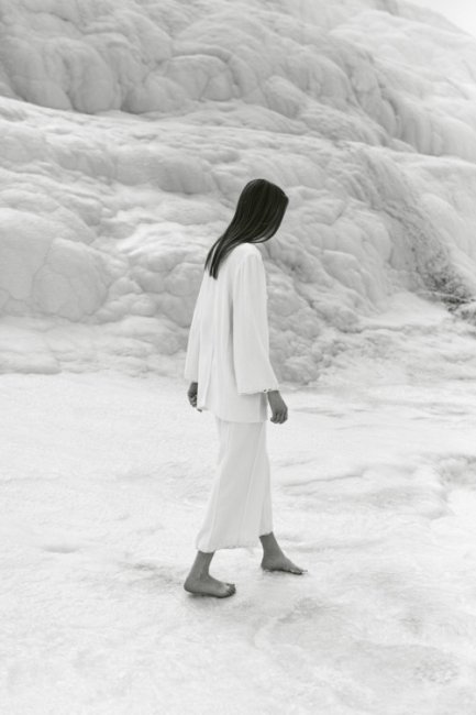Ради съемок новой рекламной кампании украинский бренд Bevza отправился в одно из самых живописных мест на этой планете – Памуккале. Его космические пейзажи стали идеальным фоном для минималистичной одежды марки.