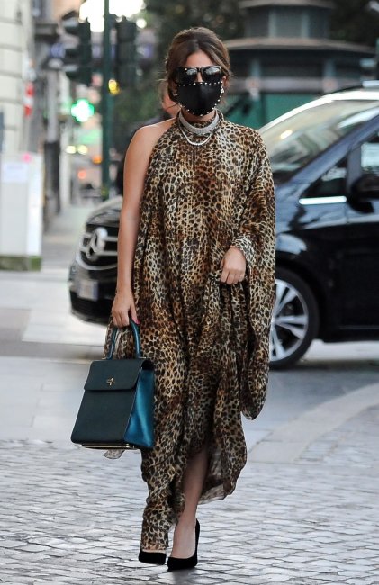Леди Гага в пальто Max MaraГага так вжилась в роль Патриции Реджиани, что ее повседневный гардероб потерпел заметные изменения. Первым образом Леди Гаги стало длинное платье из шелкового ламе с леопардовым принтом Celine, которое актриса скомбинировала с черными туфлями и строгой синей сумкой-тоутом. Для роли итальянской светской львицы, Гага превратилась в эффектную брюнетку. Актриса появилась в Риме с собранными волосами в элегантный пучок и темных солнцезащитных очках. Для своего следующего выхода Гага надела бежевое пальто из верблюжьей ткани с поясом и разрезами на рукавах, отсылающих к кейпу. Наряд из коллекции Max Mara весна-лето 2021 актриса дополнила сумкой шопером Celine, туфлями в стиле Мэри Джейн и белыми перчатками для ноток ретро-гламура.