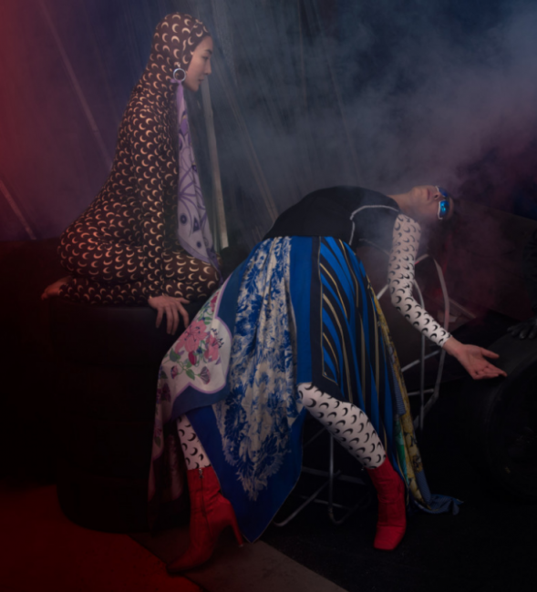 В общем, бабушкиными платками можно обмотаться с ног до головы. Что и делает большинство дизайнеров. Авангардные платья и юбки, в буквальном смысле собранные и связанные из отдельных платков, предлагают Vetements, Marine Serre и HohlomaShop.