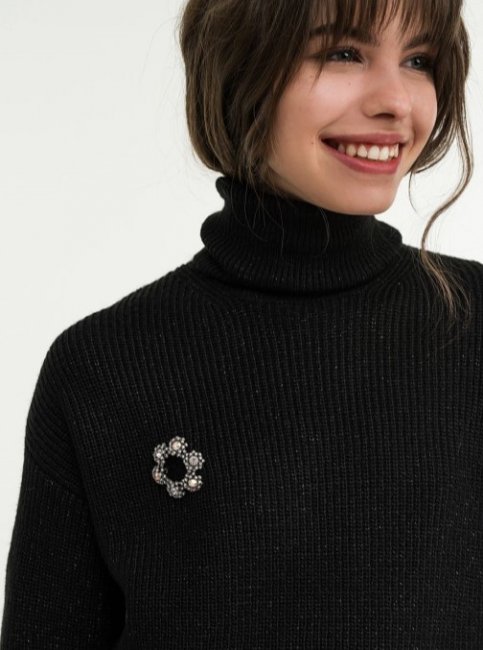 Сегодня, когда на первый план выходит потребность людей в комфорте и уюте, брошь уже не смотрится чем-то странным даже на теплом и пушистом свитере. Можно выбрать экстравагантный вариант, как у Zara: сочетать джемпер с классическим костюмом, а брошь прикрепить на груди вместо подвески.