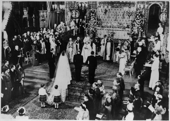 Свадьба королевы Елизаветы и принца ФилиппаЭто была по-настоящему гламурная свадьба: полностью белое торжество, подружки невесты, пажи, подарки и все, что было так великолепно. Конечно, на протяжении войны были свадьбы: я была подружкой невесты у своей тети, которая вышла замуж очень быстро, прежде чем ее муж-солдат был отправлен за границу, но о новом платье не было и речи. Это был просто образ из синего бархата, потрепанный и довольно тугой, найденный где-то в глубине гардероба. Теперь даже правительство, подобное Скруджу, признало щедрость, которую должна представлять свадьба, и каждая невеста получила 200 специальных купонов на платье. Все мы знали, что принцесса Елизавета копила свои купоны для священного события, и ни при каких обстоятельствах не будет никакого обмана: любезные женщины, пытались пожертвовать свои купоны, однако им их возвращали. Мы также знали, что даже шелкопряды, которые вложили все свои силы в изысканную белоснежную атласную одежду, были из Китая (то есть наши верные союзники в войне). 10 000 жемчужин, которые украшали свадебное платье невесты, были доставлены из столь же лояльных Соединенных Штатов, где, по-видимому, жемчуг рос в изобилии или, во всяком случае, не нормировался.
