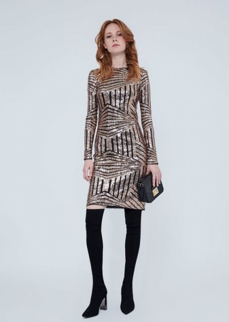 Если золото вам не по душе, то смело выбирайте серебро или платину. Любые металлические оттенки сейчас на пике популярности. Возьмите на заметку и блестящие, сверкающие, переливающиеся варианты из тканей с люрексом, сверкающие пайетками, бахромой. Все это не теряет популярности из сезона в сезон.