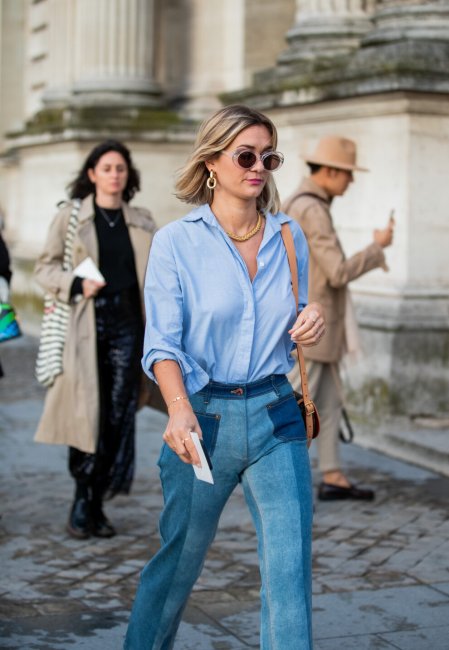 Голубая рубашка - настоящая классика женского гардероба и неотъемлемая часть не только делового, но и casual стиля. Прямого или приталенного кроя, с карманами или объемными рукавами, с отложным воротником или удлиненная - неизменным остается лишь пастельный цвет, который в этом сезоне с новой силой завоевывает признание модниц всей планеты. Vogue.ua собрал лучшие образы streetstyle-звезд и выяснил, с чем носить голубую рубашку этой весной, чтобы быть в тренде.