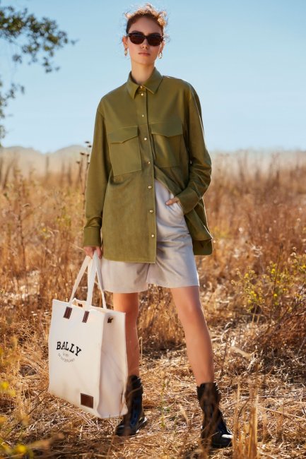 Еще один важный элемент в ДНК Bally – работа с кожей. Бренд уже давно доказал, что может делать из нее самые изящные и элегантные вещи. В этом сезоне швейцарцы делают ставку на ее сочетание с летящими и струящимися силуэтами. Среди главных хитов – платья косого кроя, юбки-трапеции и трикотаж в морском стиле. Для самых жарких дней бренд подготовил невесомые платья-сорочки и шорты в стиле сафари.