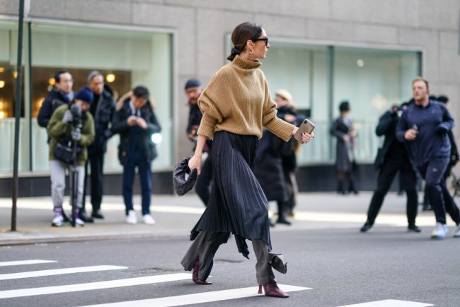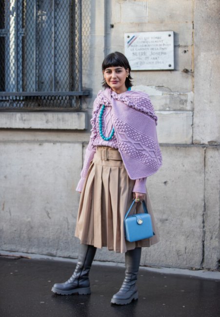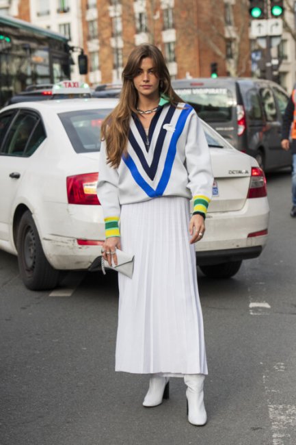 В текущем сезоне трикотаж чувствует себя особенно вальяжно: этот материал нашел отклик не только в душе дизайнеров, но и у инфлюенсеров. Трикотажные джемперы, свитера и жилеты этой весной они советуют носить именно с юбками-плиссе, дополняя их высокими сапогами. В ход здесь также пойдут яркие аксессуары - мини-сумки и солнцезащитные очки в акриловой оправе.