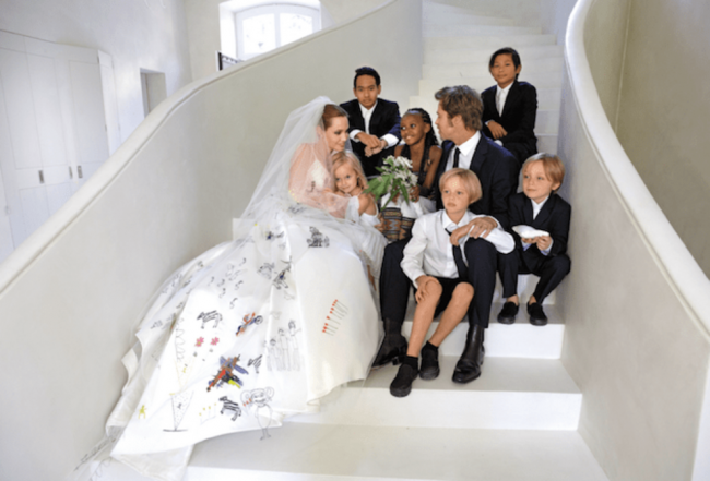 Свадьба Анджелины Джоли и Брэда ПиттаНапомним, что свадьба Джоли и Питта состоялась 23 августа в небольшой церкви в Шато Мираваль – старинном замке на юге Франции, принадлежащем паре с 2012 года. В день свадьбы звездной пары Донателла Версаче поздравила Анджелину с важной датой словами: "Красота, шик и ум. Это ты, Анджелина. Я желаю счастья и всего самого наилучшего тебе и твоей замечательной семье. С любовью, DV".