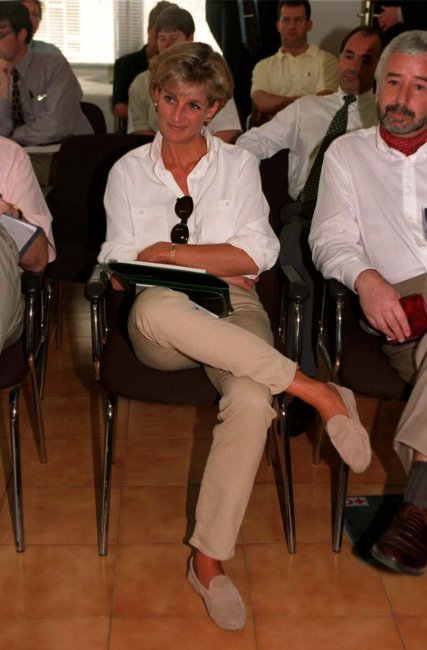 Лоферы Дианы, Принцессы Уэльской, в конце 90-х стали частью наследия королевского стиля. А точнее – пара Gomminos от Tod’s, которая является синонимом ее летнего гардероба, обеспечивающая блеск и комфорт. Также как ее невестка, Герцогиня Кембриджская, всегда будет ассоциироваться с туфлями от LK Bennett, Диана – это рекламный постер фирменной обуви Tod’s.