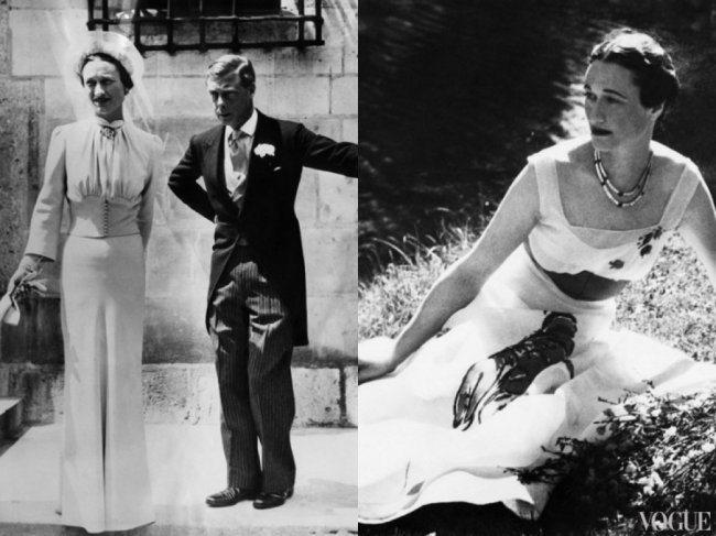 Уоллис Симпсон и герцог Виндзорский поженились, когда ей было 40 лет. В высшее британское общество она вошла за несколько лет до этого благодаря замужеству с мистером Симпсоном. В то время знаменитый фотограф Сесил Битон описывал ее как немодно одетую костлявую женщину в сапфировом бархате. Однако через год он уже сменил свое мнение и пользовался такими эпитетами как яркая, остроумная и шикарная.