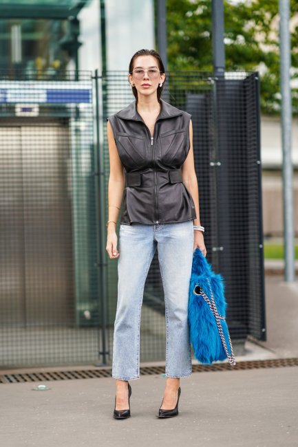 Самый очевидный вариант для жаркого лета - удлиненный жилет, который можно носить как платье. В пару к такой модели советуем подобрать лоферы в тон и сдержанные аксессуары. Особенно эффектны этим летом мягкие пудровые оттенки: припыленная роза или светло-лиловый. Еще один выигрышный вариант - комбо с денимом. Джинсовая униформа станет отличным союзником для любого выхода, а сочетание кожаного жилета и укороченной пары светлого оттенка спасет в момент, когда "нечего надеть".