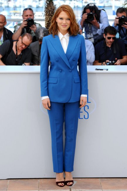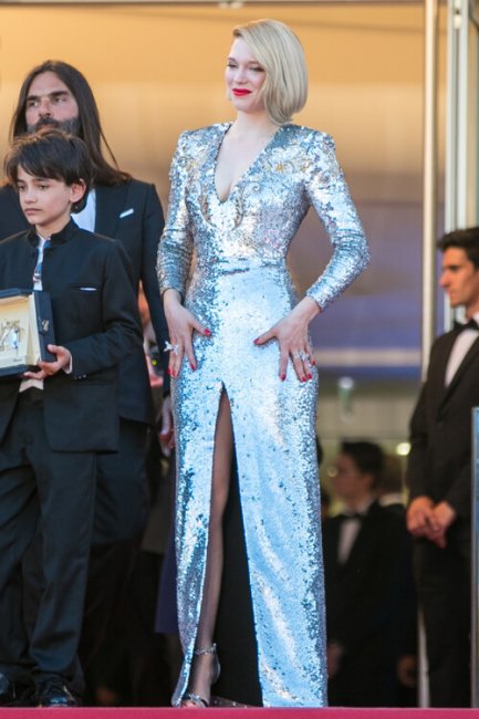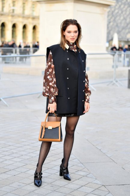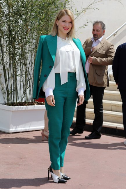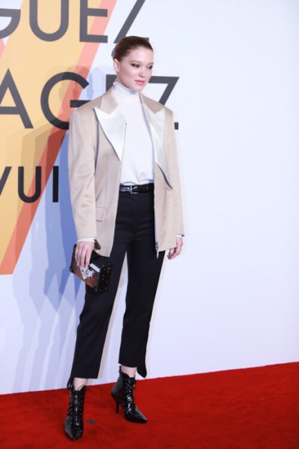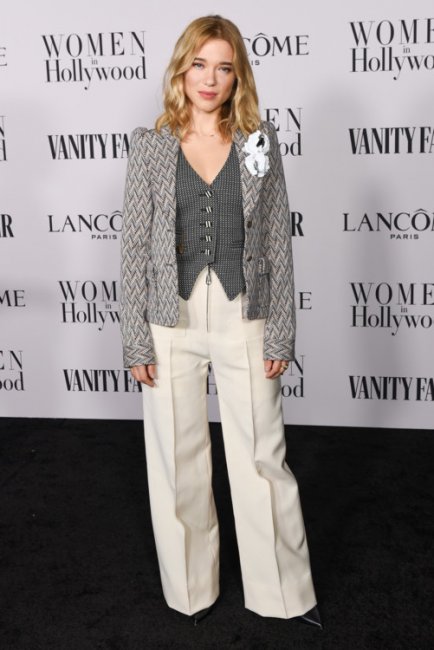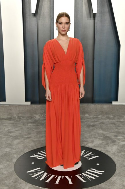 Леа Сейду на Vanity Fair Oscar Party 2020Коренная парижанка, Сейду обладает отменным чувством стиля. Ей удается органично вписать в свой образ как строгие брючные костюмы-двойки, так и торжественные платья, украшенные сверкающими пайетками или нежными перьями. Леа отдает предпочтение женственным и элегантными силуэтам, правильно подчеркивающим ее стройную фигуру, классической цветовой палитре и туфлям-лодочкам.
