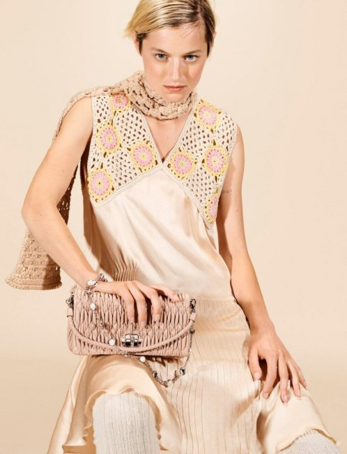 В новой кампании Коррин предстает в прямолинейной и завораживающей серии студийных портретов, в которых ее взгляд отражает женские архетипы – радость и задумчивость, серьезность и соблазн. Над серией снимков работал фотограф Стивен Майзел под художественным руководством агентства M/M Paris. Miu Miu воспевает отвагу и дерзость, восходя своими корнями к сообществу женщин и черпая вдохновение в силе их единства. В этой кампании Коррин переключается между различными личностями, различными ощущениями собственного «я» – ироничного или властного, хрупкого, но исполненного силы.