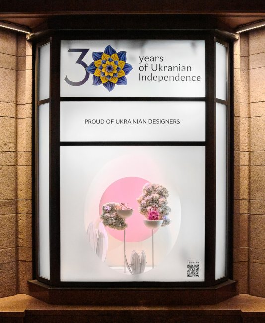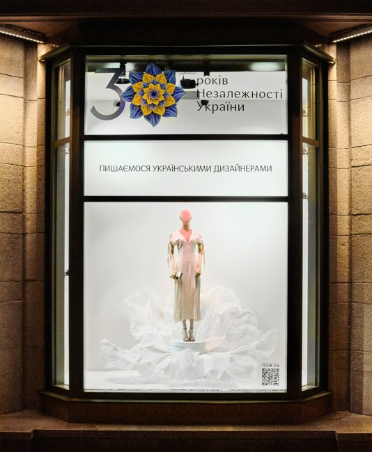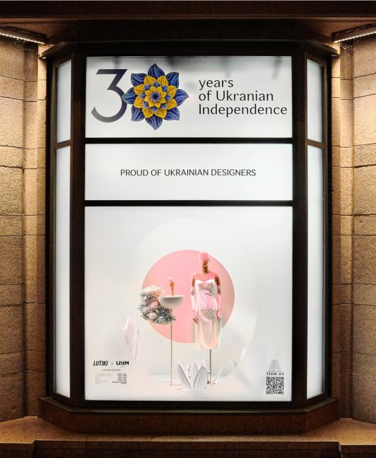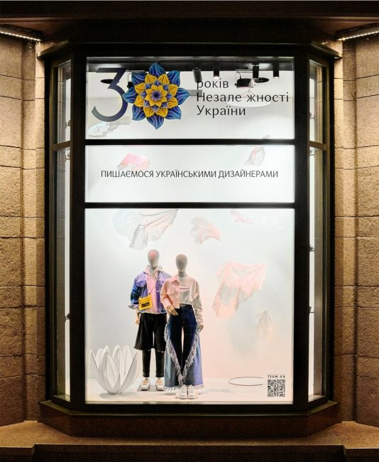 К 30-летию Независимости Украины в витринах ЦУМа представлены образы из коллекций украинских дизайнеров. Кроме этого, на 1-м этаже центрального универмага размещен специальный pop-up корнер с локальными брендами.