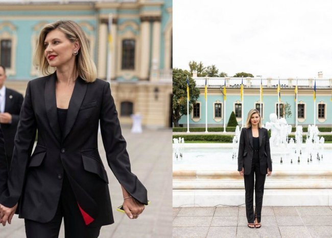 Елена Зеленская продолжает активно поддерживать украинские бренды. Естественно, что ко Дню Независимости Украины ее команда подготовилась особенно тщательно. Так, на официальном параде первая леди Украины появилась в образе от бренда Litkovskaya, состоящем из белоснежной юбки-карандаш и невесомой блузы, расшитой едва заметными колосками, символизирующими единство нации, ее трудолюбие и процветание. Для вечерних же мероприятий Елена Зеленская предпочла более строгий образ – черный брючный костюм FROLOV, одновременно торжественный и драматичный.