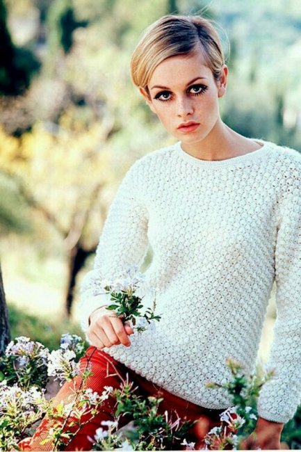 Твигги научила свое поколение носить свитера. Вязаный свитер под горло – цветной или однотонный – стал визитной карточкой ее стиля. Он не только добавлял объема хрупкой фигуре британки, но и удачно контрастировал с ее любимыми мини-юбками. Этим приемом до сих пор пользуются современные дизайнеры.
