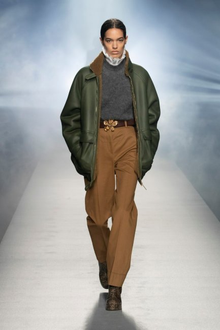 CelineРетро-куртки с накладными карманами и меховым воротником, вдохновленные униформой летчиков, в этом осенне-зимнем сезоне вновь вернулись на модный олимп. Свое прочтение винтажного тренда показали Christian Dior, предлагая темно-коричневую куртку с белоснежным воротником – такую модель с легкостью можно комбинировать как с шерстяной юбкой, так и с любимыми джинсами или деловыми брюками. Тем временем, Nanushka показали модель нарочито мужского кроя, а Ami сделали ставку на классическую прямую модель с монохромным воротом.