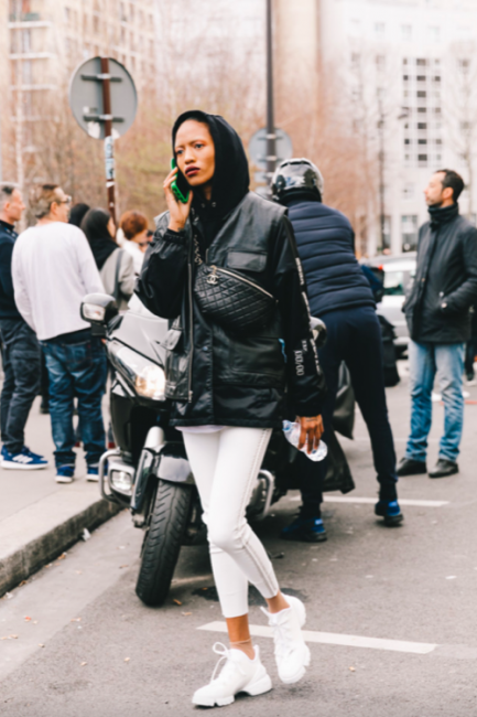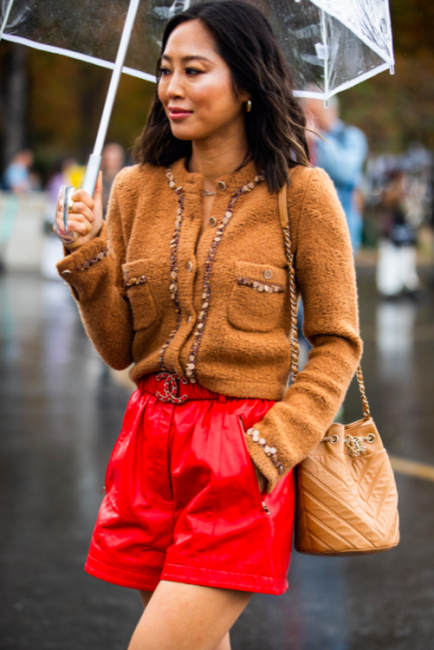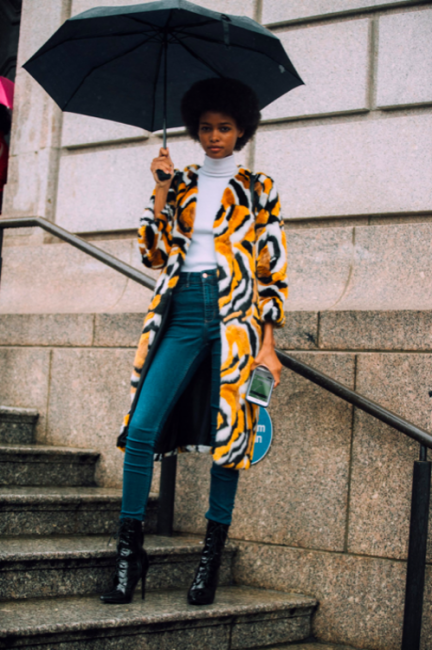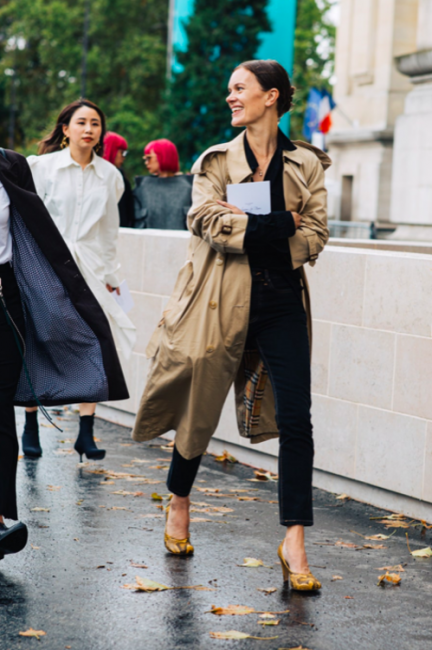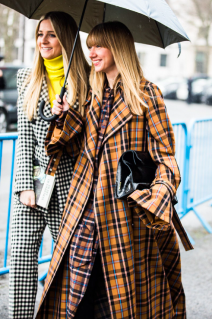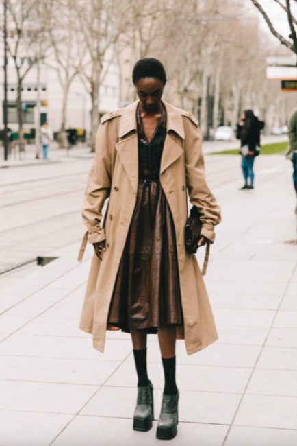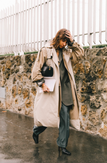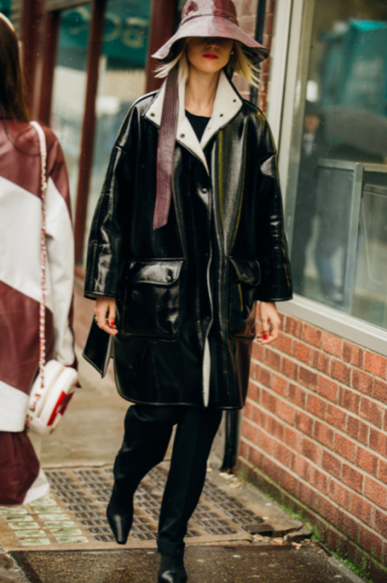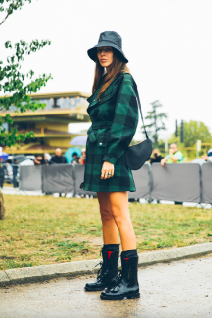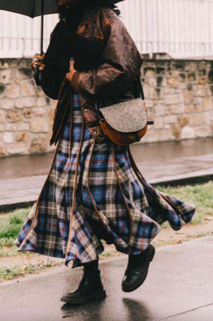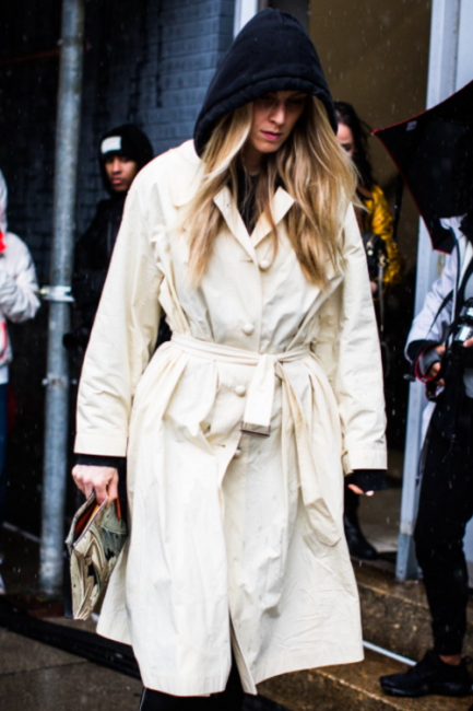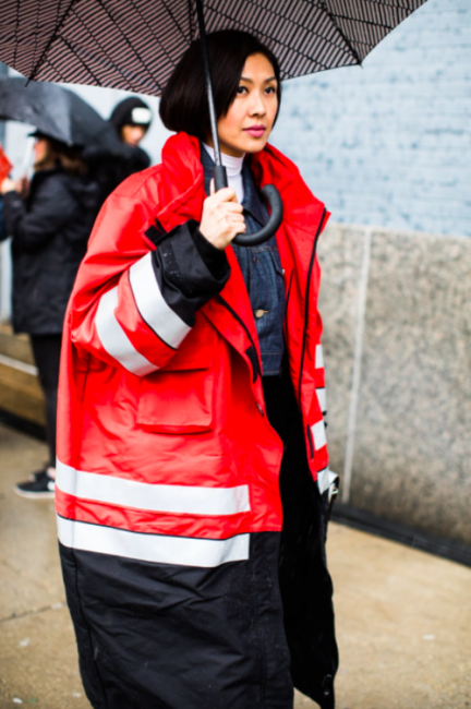 Нарядные блузы и структурные блейзеры сменяются на кожаные плащи, модные тренчи и объемные худи с капюшонами, а классические туфли-лодочки – на резиновые сапоги и челси на массивной подошве. Чаще всего в дождливую погоду модницы делают выбор в сторону макси-платьев, струящихся юбок и брюк-клеш. Помимо этого в ход идут бейсболки, панамы и платки, чтобы защитить прическу от непогоды, а улицы мировых столиц моды заполоняют элегантные зонты. Когда на улице идет дождь, streetstyle-звезды своим примером вдохновляют нас одеваться стильно, комфортно и практично. Vogue.ua собрал 55 образов с модных столиц, чтобы оставаться шикарными во время дождя.