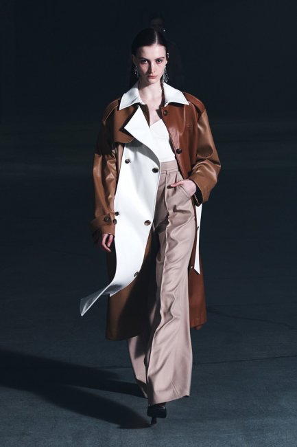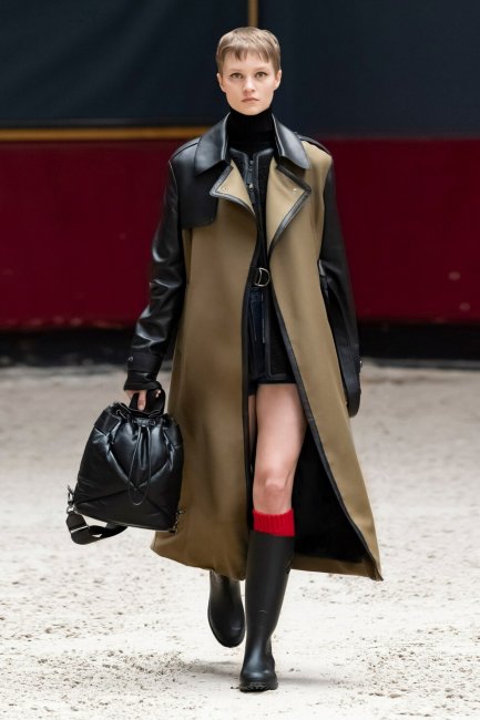 FendiИгры с сочетаниями различных оттенков и фактур в одном образе - один из любимых стилистических приемов дизайнеров. Этой осенью фантазия дизайнеров коснулась тренчей, в результате чего появились интересные комбинированные модели. Rokh решили поэкспериментировать с оттенками кожи, предлагая вниманию трехцветный тренч-трансформер, Longchamp представили модель из смешанного шерстяного габардина и гладкой кожи ягненка, вдохновленную работами Пьера Полена, а Sacai показали тренч из смесового песочного габардина с контрастными черными вставками из шерсти.