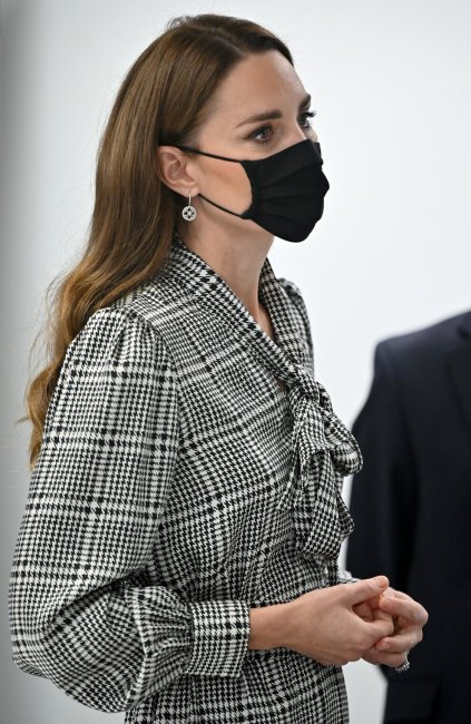 Герцогиня Кембриджская все чаще снова появляется на публике. На прошлой неделе от нее было не отвести взгляд на премьере фильма о Джеймсе Бонде "Не время умирать", а на днях она посетила Университетский колледж, чтобы познакомиться с их новых исследованием "Дети 2000-х". Для официальной встречи Кейт Миддлтон выбрала одновременно строгий и актуальный образ – платье Zara длины миди с юбкой в складку и бантом на груди. Дополнили образ классические лодочки BOSS глубокого графитового оттенка.