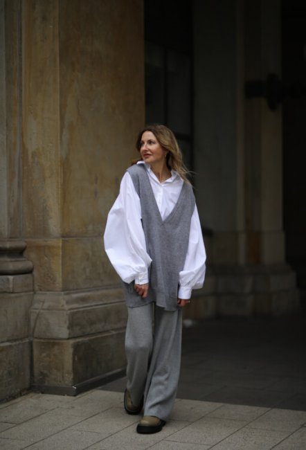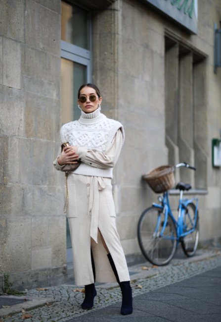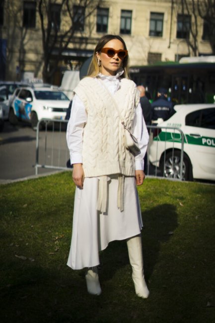 StreestyleУютная вязанная жилетка этой осенью может легко составить конкуренцию теплому свитеру. Значительным преимуществом жилетки является ее универсальность, ведь с ней так легко составить десятки различных образов и поиграть в модную многослойность. Вдохновившись выходами streestyle-активисток, сочетайте трикотажных жилеты с рубашками и кожаными шортами или шерстяными широкими брюками, надевайте поверх романтичных цветочных платьев в паре с казаками, дополняйте ими юбки в складку и блузы с отложными воротниками, как в школьные времена, или вовсе носите на голое тело. Теплая жилетка может быть как акцентной деталью в однотонном образе, так и продолжением лаконичного стиля. Играйте с оттенками и плотностью фактур и не бойтесь экспериментов. Чтобы было проще понять как именно сочетать жилетку с осенним гардеробом, взгляните на нашу подборку стильных streestyle-образов.