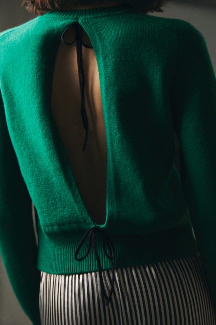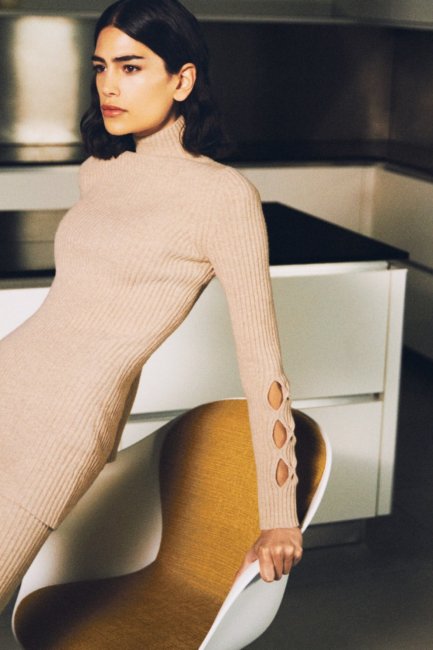Victoria Beckham & MytheresaЯркие трикотажные изделия, в том числе водолазка цвета ржавчины и зеленый свитер с вырезом на спине и декором в виде банта, - вот главные элементы коллекции, на которые бросается взгляд, однако для адептов минимализма тоже найдется модное предложение. Виктория даже выпустила уютный кардиган, напоминающий вязаный трикотаж ее мужа Дэвида Бекхэма.