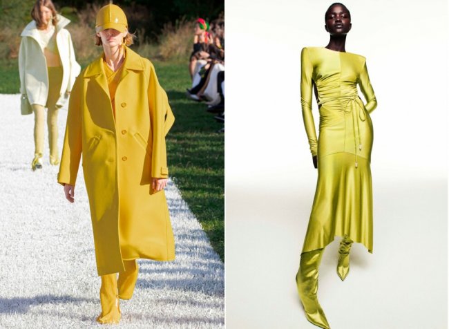 Chloe / MSGMМногие бренды именно с помощью цвета придали новое дыхание достаточно повседневным, на перый взгляд, вещам – Max Mara сделали ставку на лимонный оттенок, благодаря которому их фирменное пальто зазвучало совершенно иначе, а Дэниел Ли, разработавший коллекцию Bottega Veneta весна-лето 2022, представил новую версию своего любимого зеленого. Даже вечерние образы следующей весной с легкостью можно составлять в моноцвете – один из самых запоминающихся представил Александр Вотье. Платье с сатиновым мокрым блеском цвета лайма уже невозможно представить без сапог в тон.