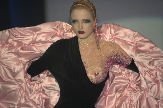 Тьери МюглерРодом из Страсбурга, молодой Мюглер переехал в Париж в 1968 году, где его карьера начала развиваться весьма стремительно. Во французской столице Тьерри работал художником по эскизам и оформителем в сети магазинов Gudule, а параллельно разрабатывал коллекции для Домов моды в Барселоне, Париже, Милане и Лондоне. Первую коллекцию он показал спустя 5 лет в 1973 году и сразу обратил на себя внимания модного мира. Минимализм, прямые силуэты, футуризм из 1960-х доминировал на модном рынке в то время. Откровенные дизайны Тьери на фоне тех тенденций выглядели по ментшей мере необычно. Мюглера вдохновляли 1950-е, но видел и представлял он их по-своему. В основном, оголяя грудь и ноги женщин. В итоге эта нарочитая сексуальность стала его визитной карточкой.