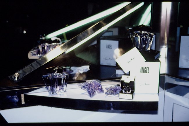 Thierry Mugler осень-зима 1995/1996ПарфюмерияРанние 1990-е были отличным временем для лейбла. На фоне успеха, в 1992 году Мюглер решает создать парфюм. Обыденность и стандарты – это не история дизайнера. Поэтому его первый аромат Angel был столь же революционным по форме и содержанию, как и его одежда. На пике популярности унисекс-веяний утрированно сексуальный и избыточно сладкий дебютный парфюм стал сенсацией. Angel – первый аромат, созданный без единой цветочной ноты. Вместо них основой стали ноты пралине и шоколада с пачули, с помощью которых Мюглер хотел воссоздать запах выпечки, которую готовила его мама. Именно этот запах был главной ассоциацией с сущностью женщины. Вышедший во флаконе уже легендарной голубой звезды, Angel стали первыми духами, которые выпустили в столь эксцентричной упаковке. Они стали феноменом и даже смогли на некоторое время вытеснить с рынка Chanel №5. Последующие ароматы Мюглера ожидала не менее успешная история.