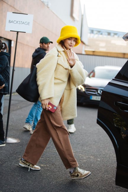 Хейли БиберМодные модели зимних панам вы можете встретить в коллекциях Anna Sui, Dolce & Gabbana и Acne Studios, а также на страницах streetstyle-звезд и знаменитостей. Так, Хейли Бибер делает ставку в этом сезоне на сочетание кожаного костюма Stand Studio с пушистой желтой панамой и кроссовками, Джиджи Хадид комбинирует теплый головной убор с пальто из овчины, а Рианна предпочитает ходить в меховой панаме на свидание. Так, Ри Ри с легкостью в пару к розовому винтажному платью с глубоким разрезом у бедра авторства Джона Гальяно надевает меховую панаму Emma Brewin, объемный бомбер Alyx, босоножки с тонкими ремешкам Tom Ford и сумку-багет Fendi в стиле ретро. Тем временем, Ирина Шейк выбирает черную меховую панаму украинского бренда Ruslan Baginskiy, который, к слову, топ-модель просто обожает.