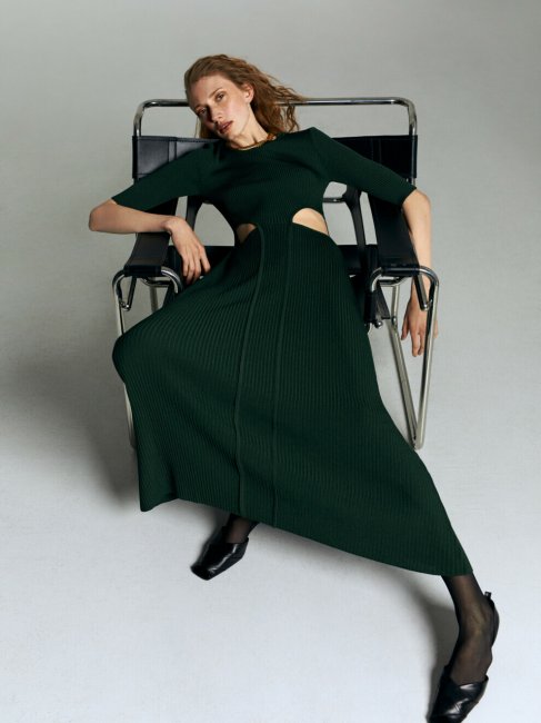 Marianna SenchinaWonderПоследние два года стали для трикотажа действительно триумфальными. Сначала этот удобный материал вернулся вместе со спортивными костюмами, затем заменид костюмные ткани на строгих двойках, сделав их менее формальными, а теперь его легко представить даже на вечерних платьях. Именно его выбрала украинская марка Wonder, которой удалось сбалансировать его практичность лаконичным кроем, классическим черным цветом и, естественно, вырезами по бокам.