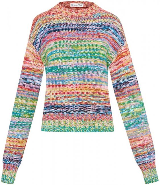 Когда гардероб уже полон свитерами в классической цветовой гамме - от бежевого до черного, самое время присмотреться к трикотажным моделями с радужным плетением. В коллекции Oscar de la Renta Resort 2022 вы найдете разноцветный свитер с круглым вырезом, который составить пару любимой паре джинсов или брюк. У Staud вы встретите трикотажное мини-платье и уютный кардиган, которые можно носить с высокими сапогами, а у Missoni - вязаный комплект с фирменным зиг-загом, состоящий из объемного свитера и широких брюк. Оптимистическое яркое плетение также украсило джемпер с широкими рукавами Monse, который можно носить уже сейчас, показывая знание модных трендов. Чтобы точно не замерзнуть в снежную погоду выбираете длинный свитер меланжевой вязки Gabriela Hearst, который с легкостью заменить теплое платье.