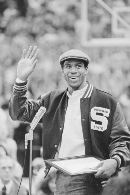 Мэджик Джонсон, 1979К 1980-м университетская куртка стала частью уличной модыУниверситетская куртка стала настолько популярной, что ее начали выпускать массово. Производители товаров для фанатов провдавали подобные жакеты для болельщиков профессиональных бейсбольных команд. Однако для фанатов куртки были сделаны не из типичной шерстяно-кожаной конструкции, поскольку эти материалы были дорогостоящими. Вместо этого компании использовали атлас, снизив стоимость курток и сделав их более доступными для широкого круга поклонников всех возрастов и классов.
