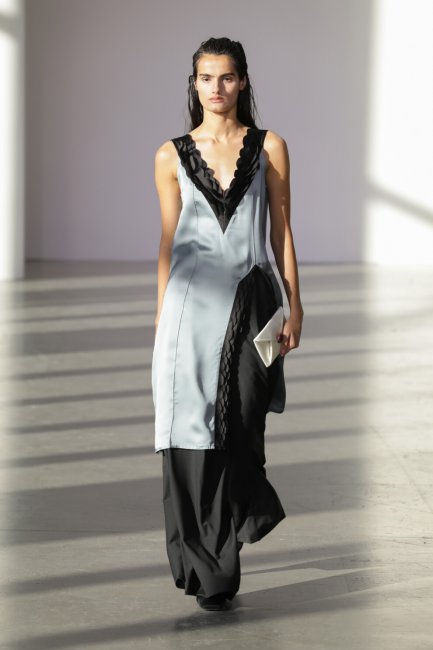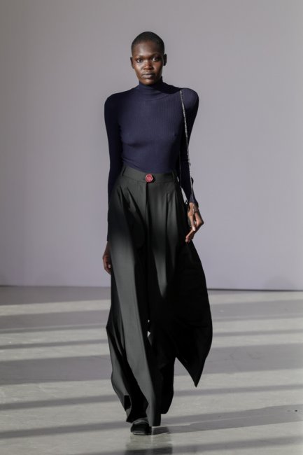 BEVZA осень-зима 2022/2023Кроме того, в коллекции можно увидеть платья, изготовленные по принципу «ноль отходов»: они сшиты из кусочков текстиля, которые остались после изготовления других предметов одежды. Процесс создания такого наряда занимает немало времени, так как каждая деталь вырезается портными вручную, а затем платье собирается буквально из кусочков в единое целое.