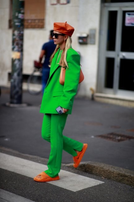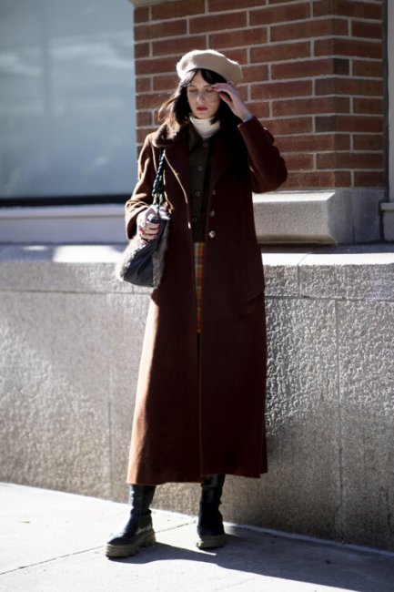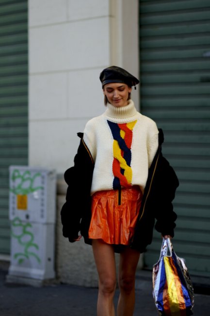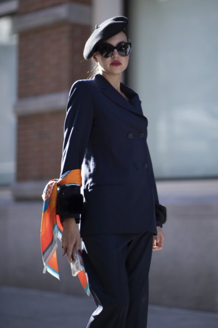 Звездное возвращение этому головному убору обеспечили streetstyle-звезды во всех уголках мира: от Копенгагена до Нью-Йорка. Самыми эффектными стали красочные или принтованные варианты. Модницы сочетали их с брючными костюмами, макси-пальто, мини-юбками и джинсами-клеш.