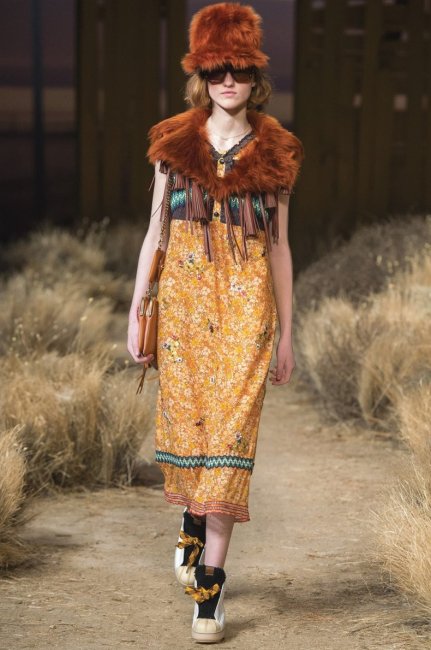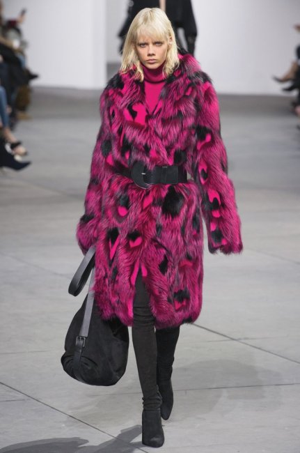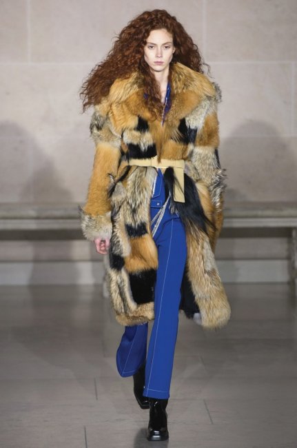 Дикая шуба природных оттенков из меха с длинным ворсом — пожалуй, самый теплый вариант из всего представленного на подиуме. Такая шуба может быть как натуральной, так и из экомеха — очень модного сейчас материала, который внешне практически не отличается от натурального.