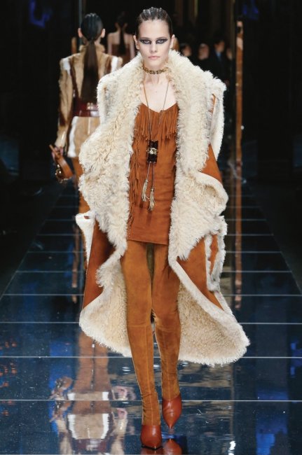 На подиуме можно встретить дубленки, сшитые в обычном крое, по примеру пальто, но есть и более оригинальные варианты, сделанные словно на скорую руку — наспех раскроенные и недошитые. А вот цвета приветствуются натуральные. Такая дубленка подойдет и для наряда в стиле casual, и для более официальной одежды.