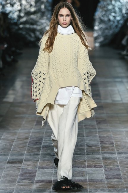 Мода на oversize этой зимой представлена и в мехе, и в трикотаже. Самый актуальный свитер сезона — объемный, даже огромный, с утрированно длинными рукавами. Для зимних холодов — самое то! Носят такой свитер как с шерстяными брюками, так и с легкими юбками-туту, а то и просто так, на манер платья.