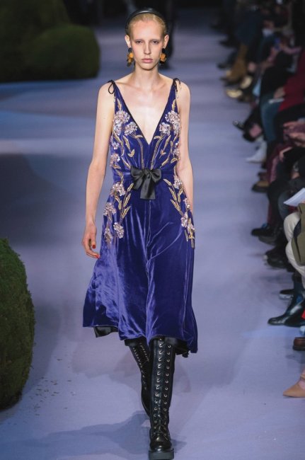 Бархат триумфально возвращается на подиумы, сорвав с себя ярлык старомодного материала. Это однозначно вечерний вариант, но чтобы не выглядеть слишком «ретро», выбирайте фасоны посмелее — с глубокими вырезами, открытыми плечами или блестящими принтами. Также можно использовать бархатные детали в отделке платья.