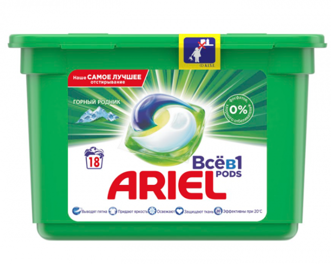 Капсулы для стирки Ariel PODs «Всё в 1» с технологией Purezyme — это абсолютно новый подход к очищению одежды. Ведь если пятен не видно, это еще не значит, что вещи действительно чистые. Ariel разработал эксклюзивную формулу капсул для стирки специально для тех, кому важна уверенность в чистоте и гигиене. Полученная на основе морских водорослей, уникальная технология Purezyme обеспечивает глубокое очищение ткани от сложных загрязнений. Purezyme проникает глубоко в волокна ткани и разбивает невидимые частицы жиров на мелкие фракции, позволяя активным веществам «захватить» их.