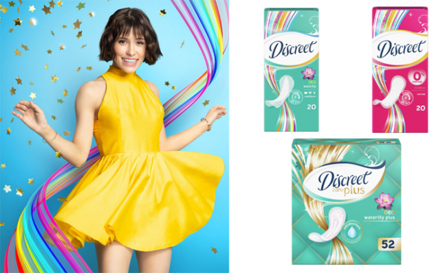 Ну а пока знакомимся с новинками. Обновленные ежедневные прокладки Discreet подарят ощущение свежести и комфорта до 12 часов, чтобы ничто не мешало чувствовать себя красивой. Кроме того, эти прокладки тоньше 1 мм, поэтому они гибкие и повторяют каждое движение. Клейкая прослойка от края до края фиксирует прокладку на белье в течение всего дня, а их особая форма с 4 гибкими зонами подходит для трусиков любой формы — вы даже ее не почувствуете.