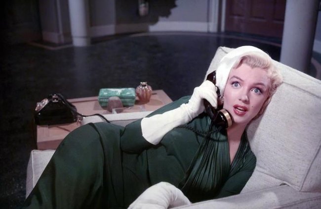 Перед съемками Монро наносила на веки капельку кокосового масла, чтобы заставить глаза влажно блестеть. Этот прием используют и сейчас, но вместо масла наносят на глаза специальные глянцевые средства.