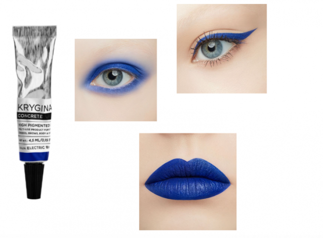 В принципе, сейчас почти у всех брендов декоративной косметики вы обнаружите трендовые синие или голубые тени. Но если хотите чего-то по-настоящему креативного, обратите внимание на Кремовый пигмент Concrete любимого многими бьютиголиками российского бренда KRYGINA cosmetics.