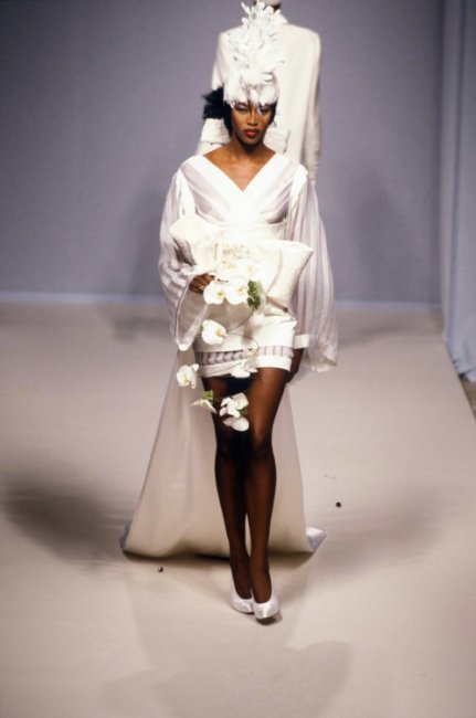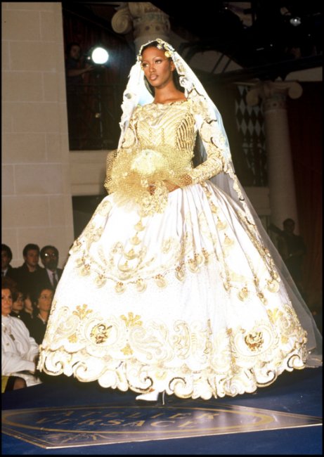 Наоми Кэмпбелл – одна из самых известных супермоделей, которая активно работает и сегодня. "Черная пантера" получила свое прозвище благодаря размеренной кошачьей походке на подиуме. Каждый ее выход сопровождался восторженными взглядами и аплодисментами. Так, на шоу Versace Couture весна-лето 1992 она продемонстрировала свадебное платье в стиле барокко, у Guy Laroche Haute Couture весна-лето 1992 вышла в мини-платье с длинным полупрозрачным шлейфом, а в коллекции Elie Saab Haute Couture осень-зима 2003/2004 закрыла показ в мерцающем свадебном платье.