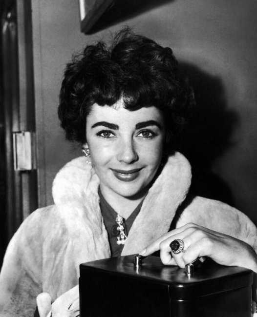Обручальное кольцо Элизабет Тейлор от Никки ХилтонаДля большинства женщин их обручальные кольца являются самым дорогим экспонатом их ювелирной коллекции, но по сравнению с украшениями Тейлор они выглядят скромно. Несмотря на то, что актриса была уже замужем несколько раз, первое значимое украшение с самоцветом появилось у Элизабет от Майка Тодда в 1956 году. Американский продюсер театра и кино подарил Тейлор кольцо в 29,9 карат. Тем не менее самое впечатляющее кольцо появилось у голливудской кинозвездвы, когда она была замужем за актером Ричардом Бертоном – он подарил любимой бриллиант стоимость в 1 миллион долларов, который впоследствии окрестили алмазом Тейлора-Бертона. Vogue.ua собрал самые эффектные обручальные кольца в драгоценной шкатулке Элизабет Тейлор.