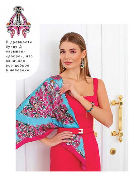 Буква Д Декоративный платок может стать не просто аксессуаром, а органичной частью платья, заменив собой традиционную драпировку, например зоны рукава. В таком случае платье станет своеобразным фоном для узора платка — только выбирайте однотонную модель, цвет которой присутствует в паттерне рисунка.