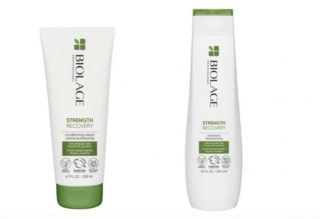 Гамма STRENGTH RECOVERY от Biolage создана специально для восстановления волос после всех видов повреждений. Ключевой компонент гаммы — сквалан растительного происхождения. Сквалан имитирует естественные липиды волос и при активном использовании восстанавливает локоны и защищает их от будущих повреждений, одновременно придавая мягкость и блеск. В линейке — два средства: шампунь и кондиционер, которые лучше использовать вместе.