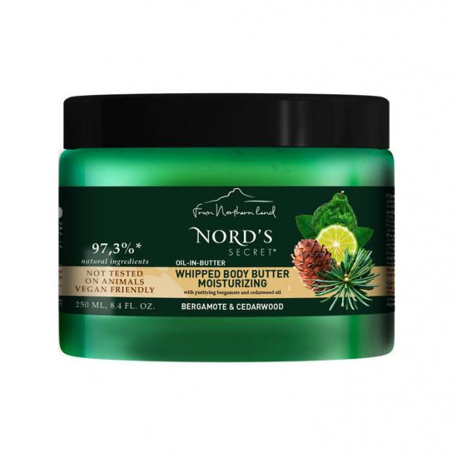 Увлажняющий взбитый крем-баттер для тела с эфирными маслами бергамота и северного кедра от NORD’S SECRET